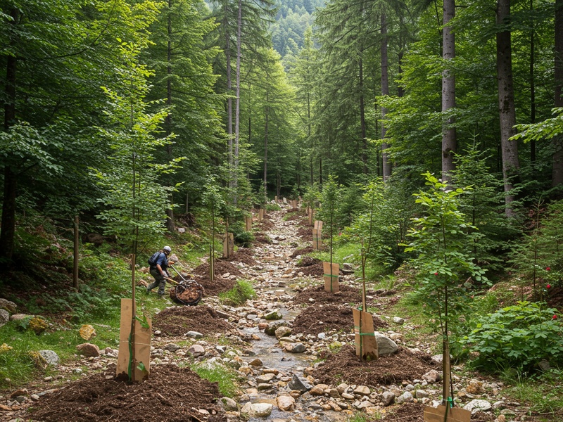 La scelta delle specie vegetali non è stata casuale. Sono state selezionate esclusivamente essenze autoctone, come il faggio, il cerro e il carpino, per garantire il pieno ripristino dell’ecosistema originario. Queste piante, adattate da millenni al clima e al suolo locali, sviluppano apparati radicali profondi e ramificati, capaci di agire come una vera e propria rete di contenimento naturale per il terreno.