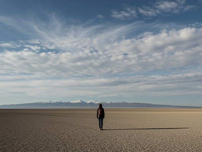 Anche l’uso del colore è fondamentale per esprimere l’essenza dei luoghi. I monocromi freddi e i toni azzurri della Patagonia comunicano un senso di immobilità, come se il tempo si fosse fermato. Al contrario, nel deserto il colore insiste: le ocre diluite e le terre consumate dalla luce rendono la distanza un’esperienza fisica, costringendo lo sguardo a rallentare.