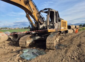 Sessa Aurunca, raid al cantiere del Consorzio di bonifica: in fiamme un escavatore
