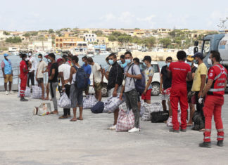 LAMPEDUSA - A Lampedusa è in corso un trasferimento di 400 migranti dall'hotspot di contrada Imbriacola verso cala Pisana, dove si trova ancorata la nave quarantena Azzurra.