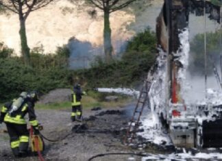 Incendio nel deposito tir Guadagno