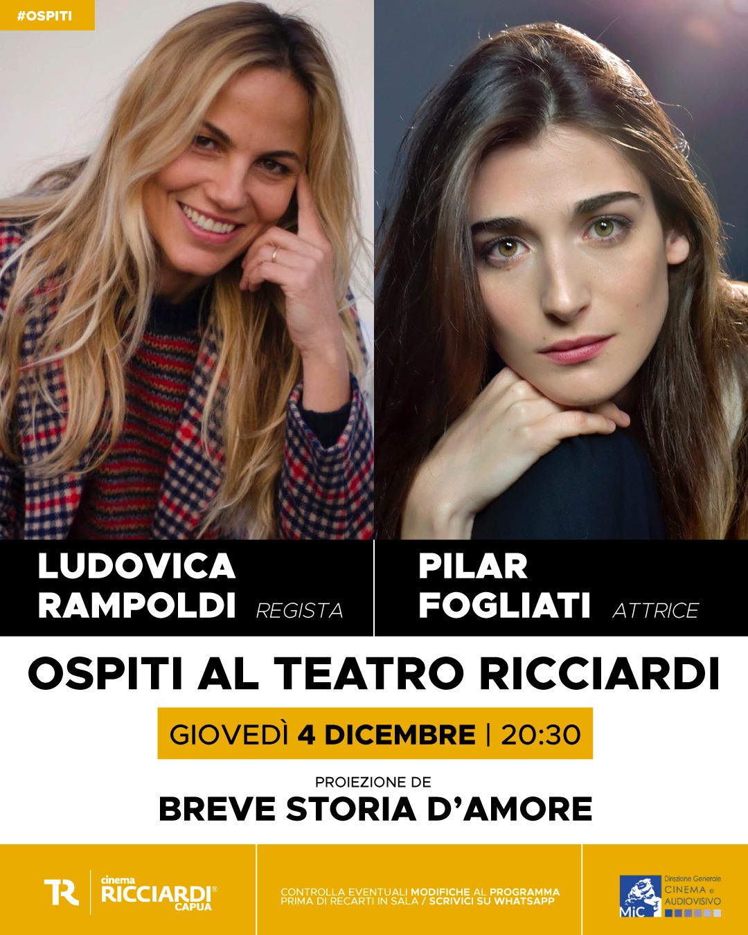 Giovedì 4 dicembre, alle 20:30, il Teatro Ricciardi accoglierà Ludovica Rampoldi e Pilar Fogliati per la proiezione evento di Breve storia d’amore, in uscita domani. Un appuntamento che celebra l’esordio alla regia di una delle sceneggiatrici più autorevoli del panorama italiano e la presenza di una delle interpreti più amate dal pubblico.