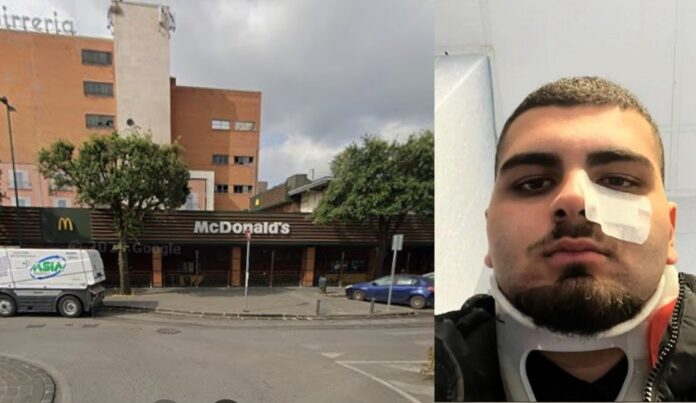 NAPOLI – Paura e violenza al McDonald’s adiacente al centro commerciale “La Birreria” di Miano, dove un giovane operatore fiduciario della vigilanza privata è stato aggredito da una vera e propria baby gang. L’aggressione ha provocato al vigilante lesioni gravi: rottura del setto nasale e danni al bulbo oculare, oltre a contusioni multiple al volto e al cuoio capelluto. A raccontare nei dettagli la vicenda è stato lo stesso protagonista, Emmanuel Barrella, 20 anni, fiduciario incaricato della sicurezza del locale, dipendente di un’agenzia di portierato e custodia: “Sono un fiduciario presso il McDonald’s di Miano, siamo tre operatori a fine settimana. Sabato scorso, intorno alle 21, stavo controllando la porta che collega al centro commerciale. Quando spalanco la porta, c’è un gruppo di ragazzini, non so dire precisamente l’età. All’improvviso mi viene lanciata a tutta forza una bottiglietta d’acqua piena e sigillata, pesante, in faccia. Ho riportato lesioni allo zigomo, al setto nasale, al