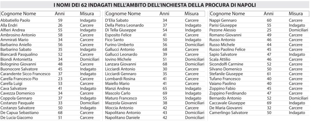 investigativo di Castello di Cisterna ha portato questa all’arresto di 44 indagati (IN CALCE ALL’ARTICOLO TUTTI I NOMI E LE FOTOGRAFIE). Secondo la ricostruzione degli investigatori, l’inchiesta ha svelato un sistema radicato di affari illeciti, intimidazioni e tentativi di condizionamento elettorale, legati all’azione di clan locali. Per 34 indagati il gip del Tribunale di Napoli ha disposto la custodia cautelare in carcere, mentre per altri 10 stati disposti i domiciliari. Le accuse contestate a vario titolo includono associazione mafiosa, estorsione, tentata estorsione, esercizio abusivo del gioco e delle scommesse e, soprattutto, scambio elettorale politico-mafioso, tutte aggravate dal metodo mafioso e dalla presunta appartenenza ai clan operanti sul territorio. Il provvedimento è stato firmato su richiesta della Direzione distrettuale Antimafia.
