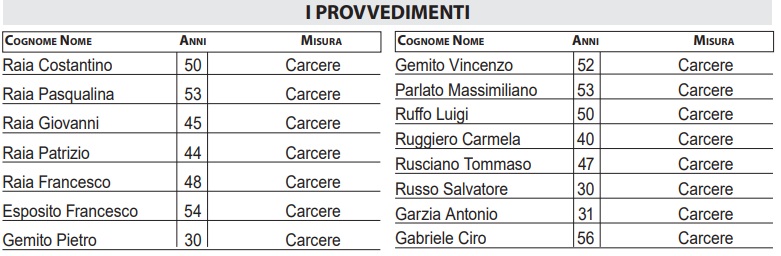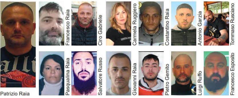 Spediti in carcere Costantino Raia, Pasqualina Raia, Giovanni Raia, Patrizio Raia, Francesco Raia, Francesco Esposito, Vincenzo Gemito, Pietro Gemito, Ciro Gabriele, Massimiliano Parlato, Antonio Garzia, Luigi Ruffo, Carmela Ruggiero, Tommaso Rusciano e Salvatore Russo (IN CALCE ALL’ARTICOLO TUTTE LE FOTOGRAFIE)